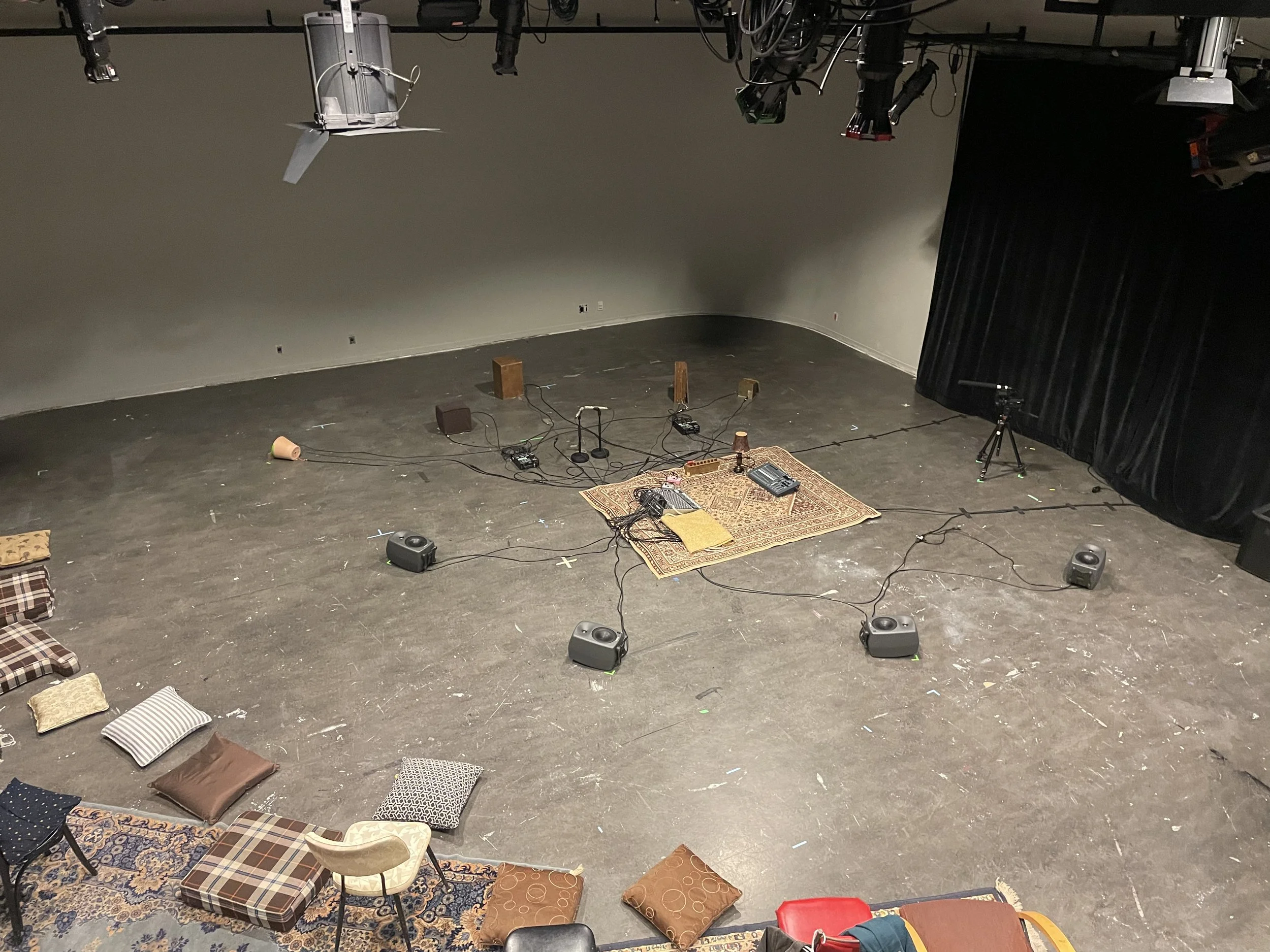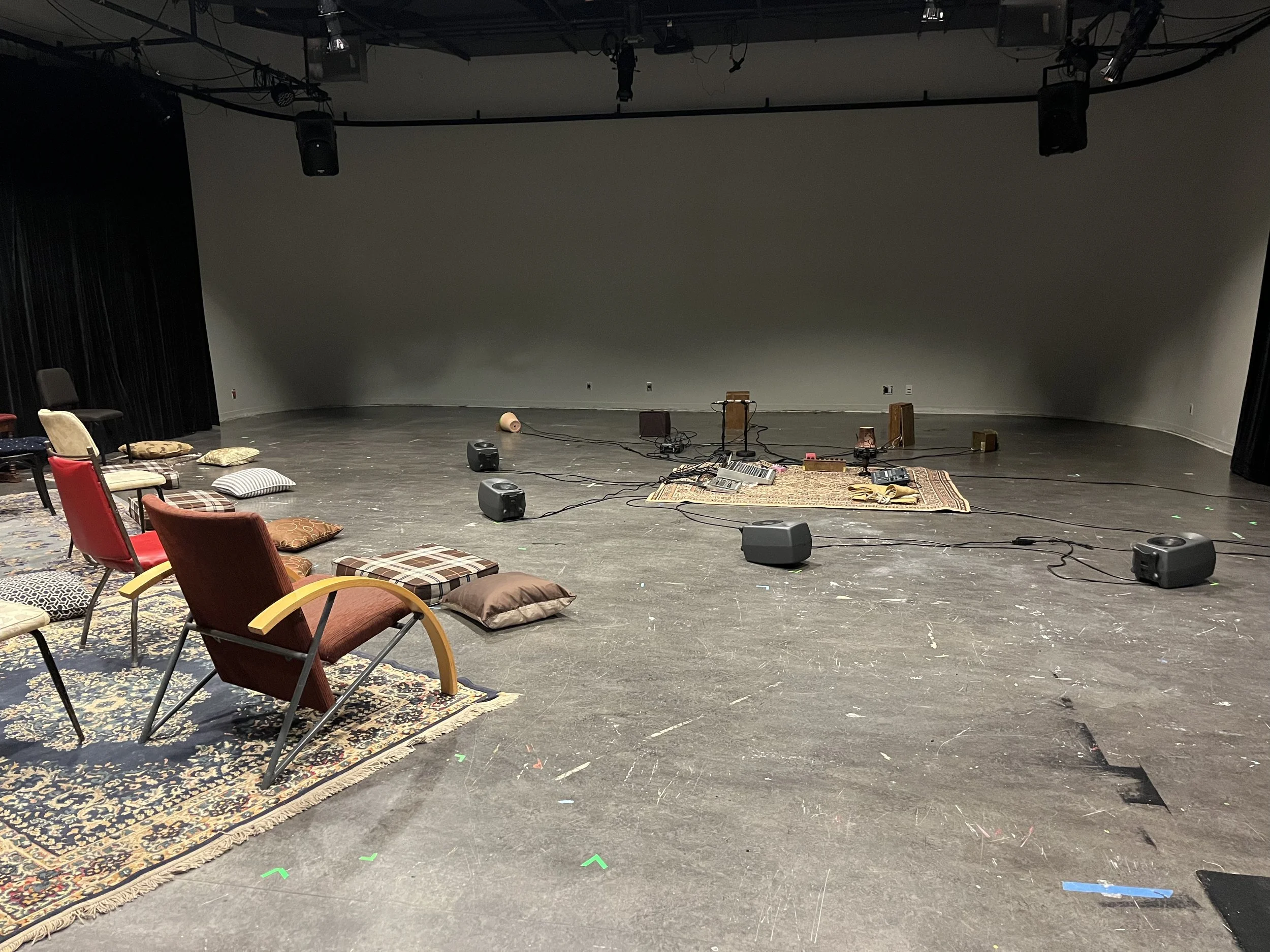 “What is heard by the listener is changed by listening and changes the listener.” (Quantum Listening, Pauline Oliveros) This performance took place at Simon Fraser University’s School for the Contemporary Arts, Goldcorp Centre for the Arts (Vancouver, BC) on September 7, 2023, in partial fulfillment of Kittie's MFA thesis. This show was the first in the development of this new performance practice.